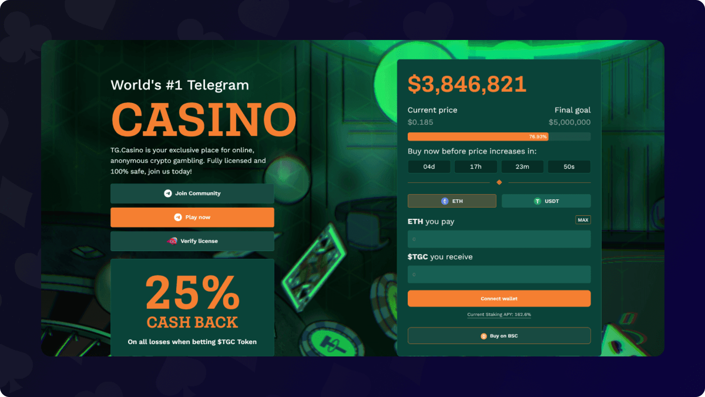 1. Kasyno TG – Najlepsze kasyno bez weryfikacji tożsamości (KYC) + premia 200% do 10 ETH